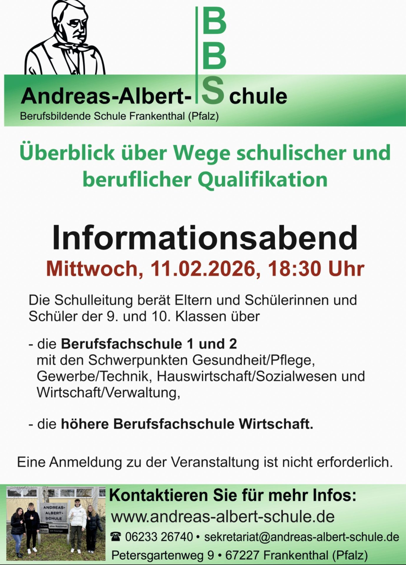 Ankündigung: Informationsabend über BF 1/BF2 und Höhere Berufsfachschule Wirtschaft am 11. Februar