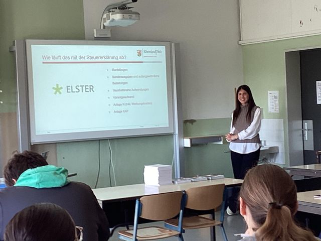 Zu Beginn gab Frau Yücel einen kurzen Überblick über die Tätigkeiten einer Diplom-Finanzwirtin. Direkt im Anschluss entwickelte Frau Akinci gemeinsam mit den Schülerinnen und Schülern einige grundsätzliche Verwendungszwecken von Steuern. Dabei wurde einigen klar, wie teuer ein Meter Autobahn (fast 150.000 €) oder die Ausgaben für Schüler oder JVA-Insassen sind. Nach einigen individuellen Frauen erfolgte noch eine kurze Überprüfung mittels eines kurzen Quizzes.