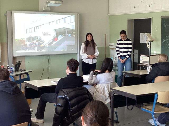Zum Abschluss der Veranstaltung erläuterten Frau Akinci und Frau Yücel noch die beruflichen Perspektiven, die eine Ausbildung bzw. ein Duales Studium in der Finanzverwaltung ermöglichen – unter anderem von der Sachbearbeitung im Innendienst, über die Betriebsprüfung im Außendienst bis hin zur Steuerfahndung. Auch hier ergaben sich mehrere Rückfragen von Seiten der Schülerinnen und Schüler.